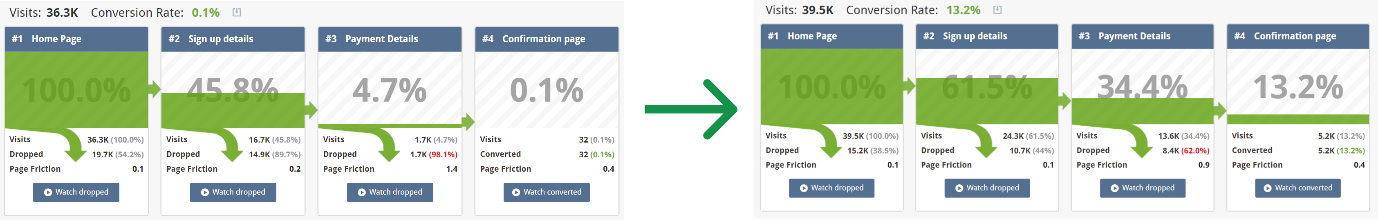 This feature provides information on low-level detail, such as how much time visitors spent on each field in a form, how often a field is left blank, and what percentage of visitors changed their input to a particular field. This enables you to quickly identify where problems exist, and make changes to help users complete the process more easily and more consistently.